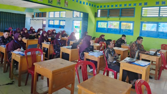 Selain itu, beliau juga memberikan contoh nyata penerapan deep learning pada berbagai mata pelajaran, strategi penyusunan perangkat pembelajaran berbasis projek, hingga metode asesmen yang sesuai dengan pendekatan ini. Para guru tampak aktif mengikuti diskusi, bertanya, dan berdiskusi mengenai implementasi kurikulum tersebut dalam kelas masing-masing.