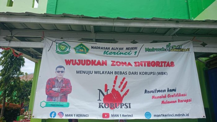 Zona Integritas merupakan upaya yang diarahkan pada terwujudnya wilayah bebas dari korupsi serta peningkatan kualitas pelayanan publik di lingkungan pendidikan. MAN 1 Kerinci berkomitmen untuk menjalankan program ini dengan melibatkan seluruh unsur, mulai dari pimpinan, tenaga pendidik, pegawai, hingga peserta didik.