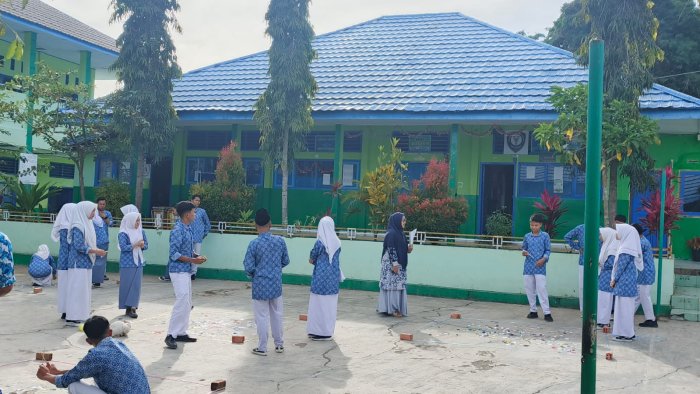 Dalam praktikum tersebut, siswa diajak melakukan simulasi seleksi alam dengan menggunakan potongan kertas berwarna sebagai media pembelajaran. Kegiatan dilakukan di luar kelas agar siswa dapat mengamati secara nyata bagaimana faktor lingkungan memengaruhi keberlangsungan “individu” dalam suatu populasi.